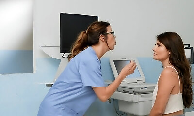 Ginger dyke is kissing and fucking nerdy brunette in glasses Sara Luvv