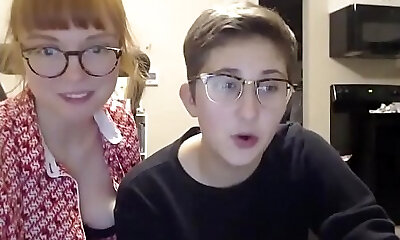 Redhead glasses wearing nerd got lucky as she fucks with a faux tits cougar