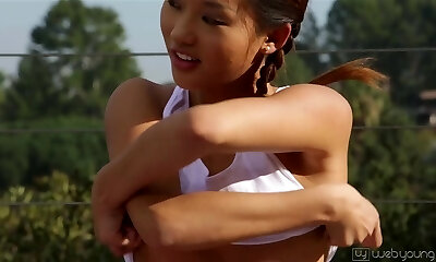 Frisky Asian Lesbians Suck Each Other's Gentle Tits and Raw Twats Near Campfire