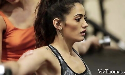 FitnessRooms Two Lesbian Gym playmates workout and fuck