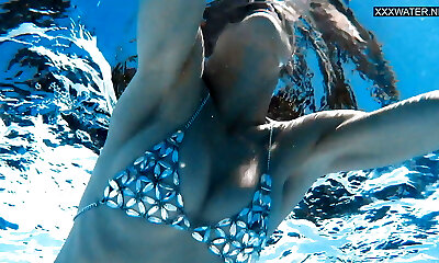 две плавающие топлесс милашки диана риус и шерил роузбад демонстрируют трюки под водой